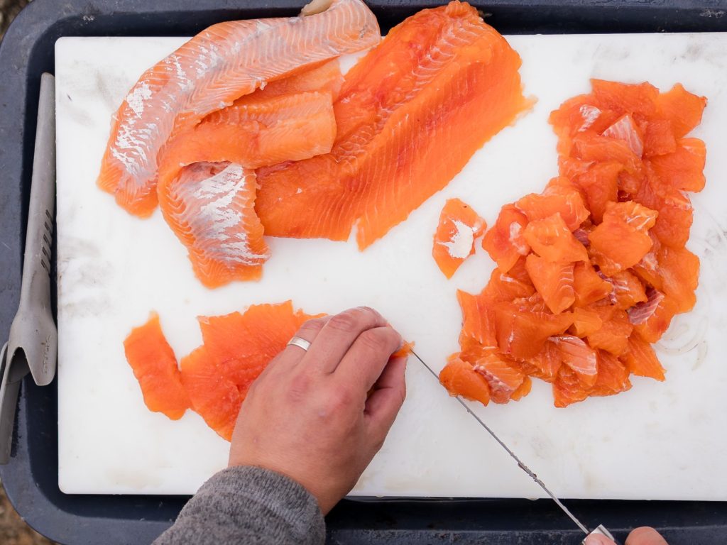 Next up is a delicious shore-lunch prepared by your professional Kasba guide. Shore lunch puts a delicious culinary spin on a traditional way of eating: preparing and cooking fish lakeside over an open flame. No bland fish here, though: our guides are experienced chefs and will bring the necessary ingredients to cook a delicious meal with a full flavor profile. You’ll get to watch your guide clean, fillet, prepare, and cook your day’s catch. This is the time when your guide shows off his culinary skills. With the morning catch in hand your personal guide becomes your personal chef.